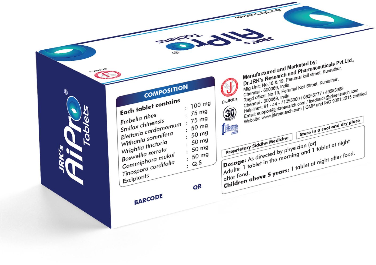 JRK’s AiPro tablets are specially formulated to modulate immune response and support balance in autoimmune conditions. Enriched with the natural source of Boswellic acid (Boswellia serrata) and Guggulsterone (Commiphora mukul), AiPro offers targeted immune-modulating benefits for effective management of autoimmune and related conditions.